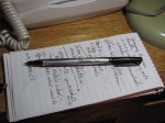 I launched my own search for a decent pen and found a surprisingly good one. Who knew Sharpie, maker of those big fat markers, had a lovely little fine point? The pen feels good in my hand, the ink flows quickly and doesn’t skip. Sharpie’s claims that it doesn’t bleed through aren’t quite accurate. It mostly doesn’t.