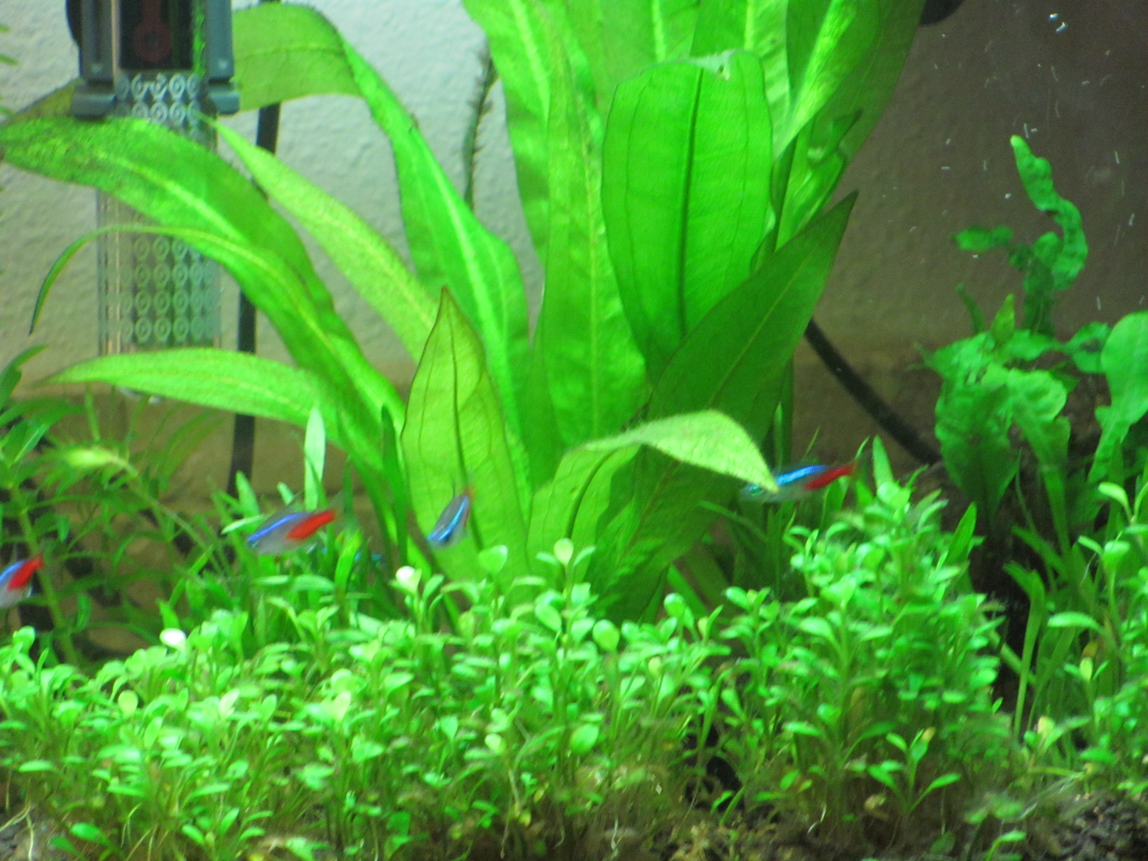 A month ago, the cube garden was a disaster, overrun with a stubborn algae the otos couldn’t keep up with and rotting fish food because I hadn’t yet figured out how much the neon tetras were eating. Cleaned it out. Cut out the plants that were algae-choked, replanted with micro sword and glossostigma, recharged the DIY CO2 and moved the whole system back into the kitchen where it won’t be neglected. Now it’s positively glowing. Seven gallons of planted tank heaven. I love this little set-up because it’s my first aquarium, purchased almost three years ago. Beautiful, simple (well, complicated but in a good way) and makes me happy.