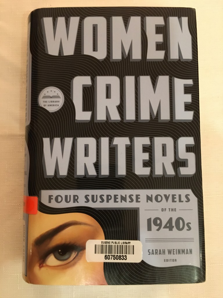 Browsing the fiction stacks at the local library, I stumbled on this collection of 1940s era crime novels by female authors. They are interesting products of their time, each story focused deeply on the inner life of the characters, and two of them told from the point of view of the criminal. World War II is a backdrop. Some characters are veterans, others are coping with the challenges of gas and food rationing, a thing I had forgotten about that complicated people’s lives at that time. In “Laura,” author Vera Caspary uses multiple viewpoints and a surprising twist on the mistaken-identity trope for a very satisfying read. In “The Blank Wall,” Elisabeth Sanxay Holding presents a morality tale where a criminal’s behavior has more to recommend it than the morally upright mother of two around whom the action swirls. I’m glad to know these authors and these stories. I like being aware of how narratives shift as culture shifts. Thanks Sarah Weinman for pulling these stories together. Weinman, whose web site is a great compendium of crime stories, has another anthology of ’50s-era novels that is also on my list.