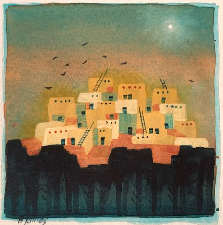 My good friend Chris James and I have known each other 40 years, and while I knew he had a gifted sister — Betsy James, both an author and an artist — I hadn’t ever seen her work until we visited the Nedra Matteucci Gallery in Santa Fe this month. Goodness me.