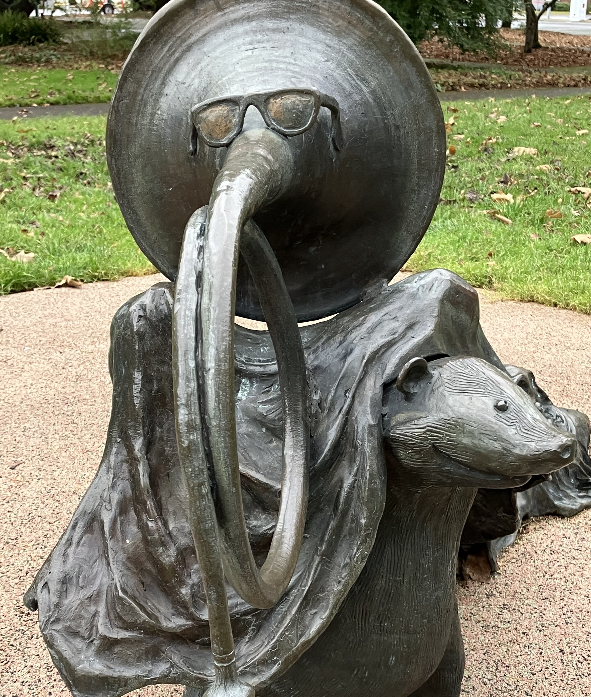 I loved the little details, specifically the glasses on the horn (perhaps a French horn?). Loved seeing the alligator, its eyes cast upwards where a crow (raven?) sits on its head playing a tiny violin. You catch a glimpse only in a picture. You feel the piece in its presence.