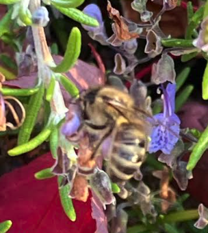 I’m like the bee on my rosemary in this picture. Blooming nicely here in October in mild Oregon, the rosemary bushes still attract dozens of bees, and they arrive just a little before the sun touches the plants. I got an early start, too, tumbling out of bed to dance in PJs.