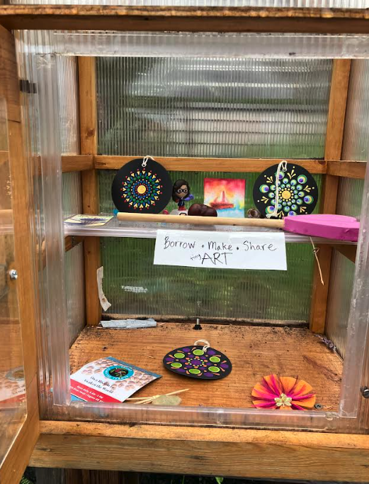 But one neighbor chose a different option, stocking a cute little box with art, not books. It brightened our morning rainy stroll.