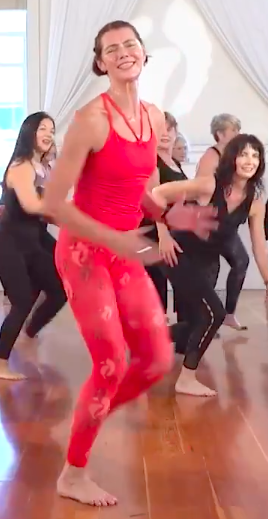 So the various selves cue up the online routine “Ignite.” And we keep the lights off, letting dawn slowly brighten the room. This routine starts with my favorite song: “The Groove is You,” which tired me starts getting into.