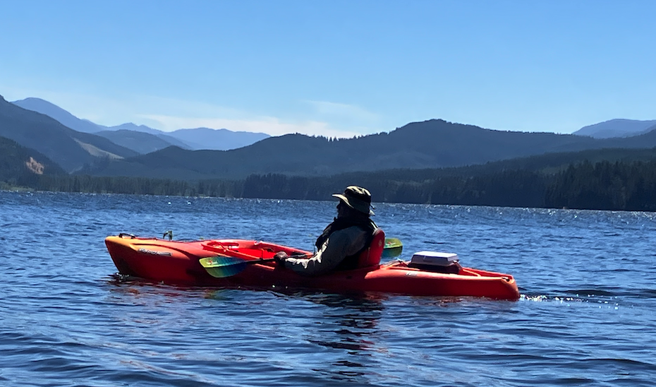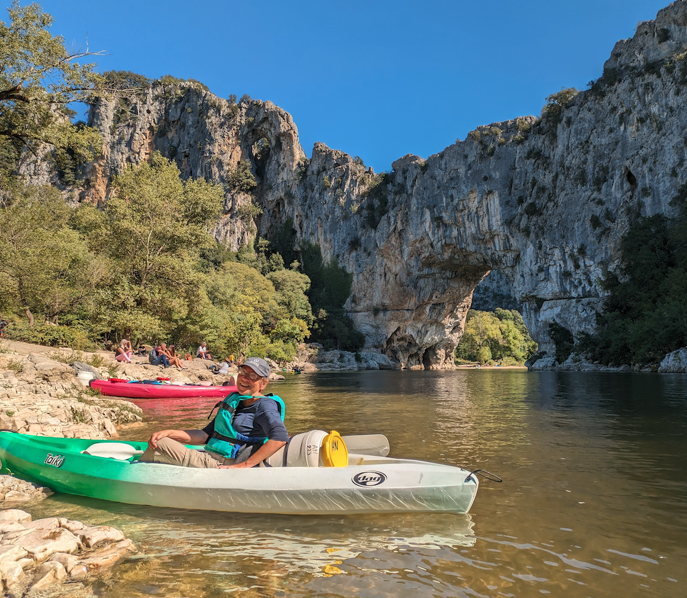 Today’s pleasure — places I’ve kayaked (clockwise from top left): Cameron Lake, Waterton National Park, in September; Eklutna Lake, Alaska in June; Dorena Lake, Oregon in July; Ardeche River in France in September. I highly recommend going back to bright photos when the lowering sky feels heavy.