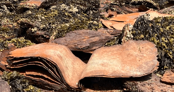 For a respite from the crowds, we chartered a boat and captain (John Joeright at Sailing Alaska) for an overnight trip to Taku Harbor, part of the Taku Harbor State Marine Park, where there is a small dock for boats (no roads, no air strip, no town, just wildness). We were one of just four small boats who tied up there. A trail took us past an old salmon cannery, long gone now, but still strewn about with the most interesting remnants of its existence, like the sheet metal that now looks like an old book flung open, pictured below.