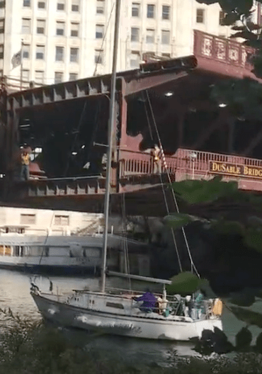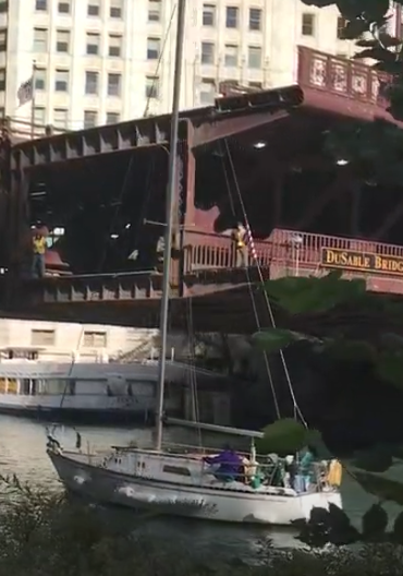 I’m a sucker for drawbridges and I blame that on Chicago and on Craig. Once, visiting the windy city in September, I learned that the 18 drawbridges spanning the Chicago River all rise up in the spring and in the fall to let the pleasure boats go out onto Lake Michigan and come back in for winter storage. These bridges sit low for ease of the downtown street traffic. Once Craig (spouse, best travel buddy, engineer and lover of infrastructure) learned there was a drawbridge museum in Chicago, we had to go. A museum’s where you get to stop and think about things you otherwise would never give a thought to and I began to think about drawbridge leaf weights, the weight of the part of the bridge that must be raised. Chicago’s Michigan Avenue drawbridge has a leaf weight of 4,100 tons. That’s over 9 million pounds, which to translate into a number I well know: 60,000 of me. Only made of steel. In Chicago that day, we had a good vantage point to watch what we thought would be a stately procession of sailing vessels come down the river, bridges raised to let them through. Only one boat came through, holding up traffic, one bridge at a time, as it sailed up the Chicago River. I think sailors, being perpetually optimistic, figured they could wrangle a few more fine days on the windy lake.